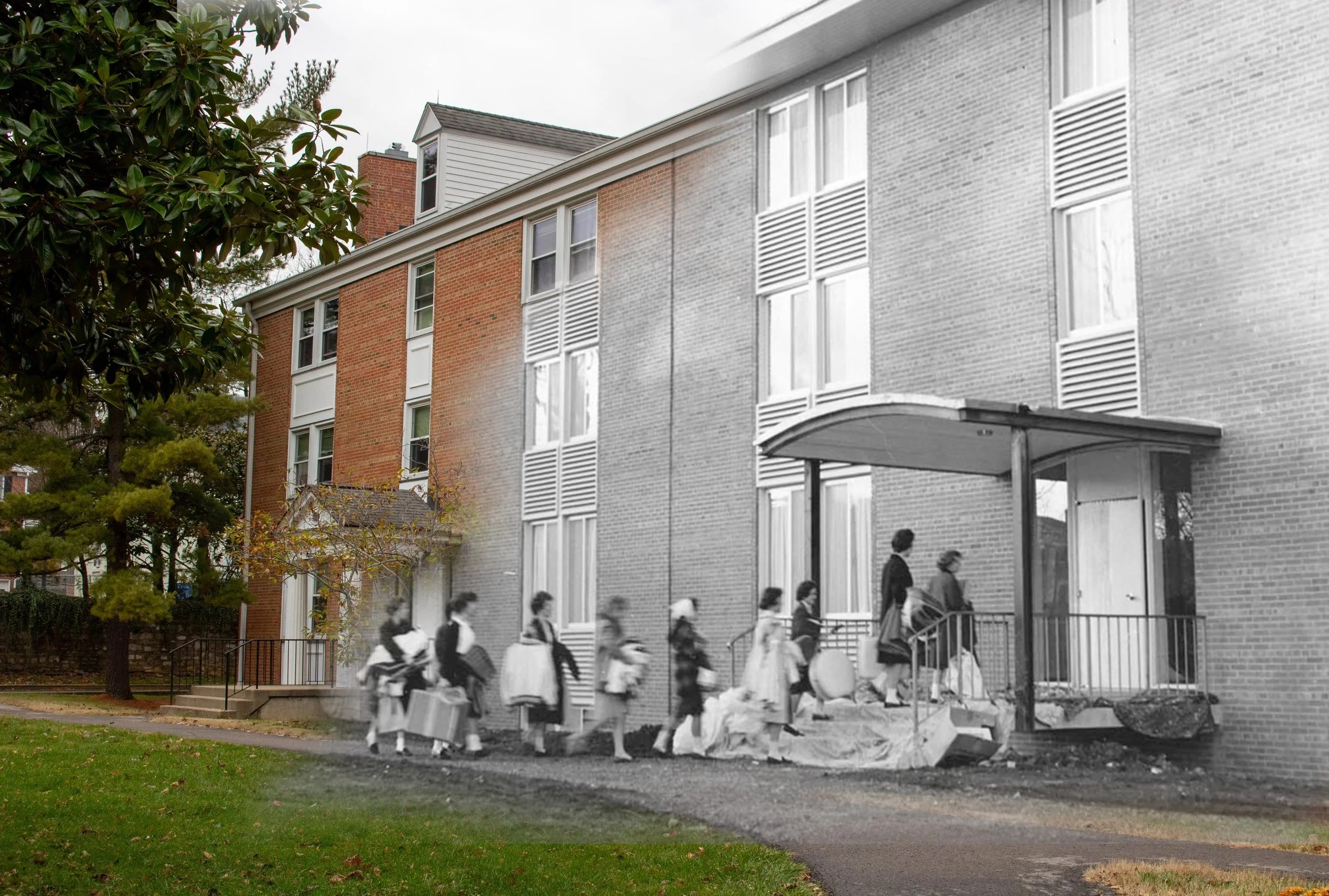 Students moving into Acheson-Caldwell House January 25, 1962. Students are unidentified / Acheson-Caldwell, December 2023