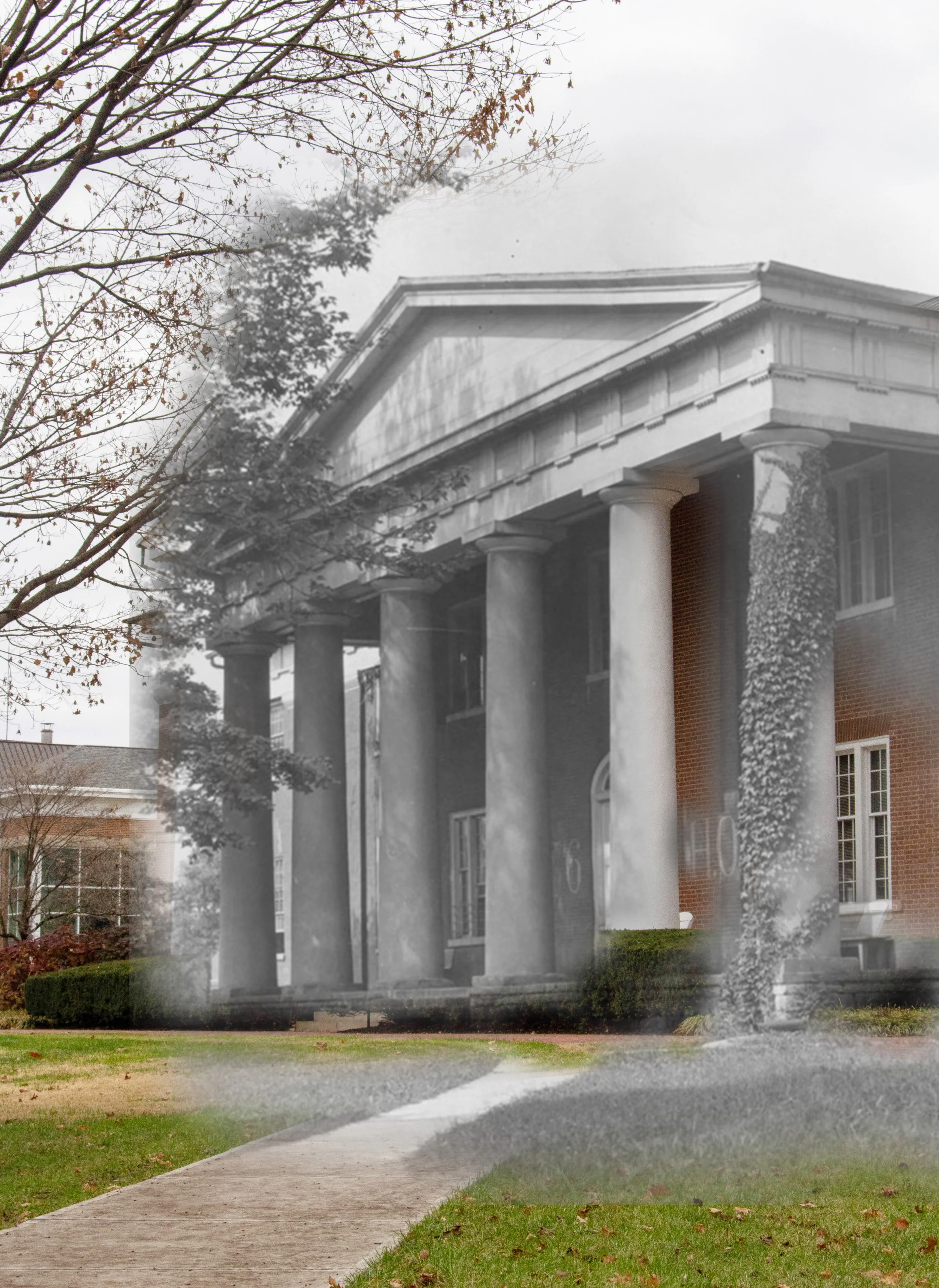 Photograph of Old Centre on the Centre College Campus, circa 1925. C6-H0 was painted on campus buildings following the football team’s upset of Harvard in 1921 / Old Centre December 2023